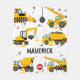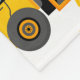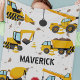 Cute personalised kids fleece blanket featuring cute cartoon illustrations of stop signs, a dump truck, a digger, a cement truck, a wrecking ball crane, splatters of dirt, and your child's name, you can treat your son to a special gift that is sure to delight him.