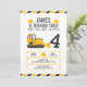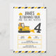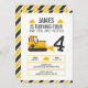 An awesome and fun invitation for kids birthday party's with a construction bulldozer theme. The kids construction bulldozer birthday party invitation allows all text elements to be personalised. That includes the big number "4" in front of the bulldozer. It also includes three hard hat images which can be moved and adjusted in size if needed. If you child is into cars, trucks and vehicles of all kind, this bulldozer birthday party will be the perfect invitation for a construction theme birthday party.