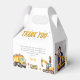 Say thank you to your guests in a special way with a thank you favour box that features a favourite birthday photo of yours! Printed with cheerful watercolor images of a digger, dump truck, traffic lights, and road signs, this box is sure to put a smile on their face and make them feel appreciated. On the left the card reads: "I enjoyed the cake and the presents too, but my favourite part was seeing you! Thank you for coming to my party and the wonderful gift. Lots of love, [Their Name]". Let your guests know just how much you appreciate their presence and gifts with this special thank you box which you can fill with treats and sweets or a slice of the birthday cake!