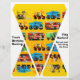 Celebrate your Kid's Birthday Party with these amazing Custom Birthday Big Trucks Birthday Pennant Garland / Bunting! A blue dumper truck, yellow excavator, green tractor, red firetruck and a yellow digger! Perfect for your fire truck, digger, truck or tractor mad child on his or her Birthday. A full range of truck party supplies, gift idea, invites and more. Simply cut out the birthday bunting and fold along the lines. Then string it along a string or ribbon and stick it with sticky tape. (String or ribbon not supplied) 3 Sizes Available- 3 flags per double sided sheet 25 x large size will make approximately 30ft / 10m of flag bunting, depending on spacing.. Click below to see more great ideas for a truck themed kid's birthday party from TruckStore.
