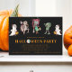 Invite friends to you halloween costume party in style , with this stunning halloween invitation feacturning spooky monsters on a black background ideal for any childs costume party.