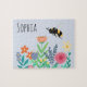 This cute and whimsical kids puzzle design features a bumblebee with flowers, and can be personalised with your girls name. The perfect nature-themed floral gift for any bee or flower lover!