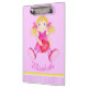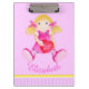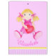 Whimsical rag doll holding a heart watercolor kids named girls clipboard. Customise with your name. Currently reads Love you and the heart pillow and Elizabeth. Uniquely painted in watercolor and designed by Sarah Trett.