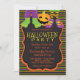 Halloween party invitations with cute Halloween costume feet and pumpkin on a colourful Halloween stripe background. This fun kids Halloween party invitation is easily customised for your event by simply adding your details.