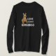 I love this shirt. I had written to the artist asking her if this picture was available on a shirt, and she wrote me back telling me where I could find the shirt. These shirts can be custom made to have a different saying. I loved this saying and went with it. The artist wrote me back later to tell me that she had seen my order go through. How's that for service? Pretty special. It's just as displayed. Perfect!