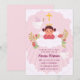 Kids Cute Pink Baby Girl Baptism Christening Invitation