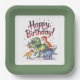 This cute green dinosaur happy birthday square paper plates design shows adorable watercolor dinosaurs of various colours. This design also shows festive confetti as well as the phrase "happy birthday". The main colour scheme is greens, reds, and blues. Enjoy this fun kids birthday party paper plates design!