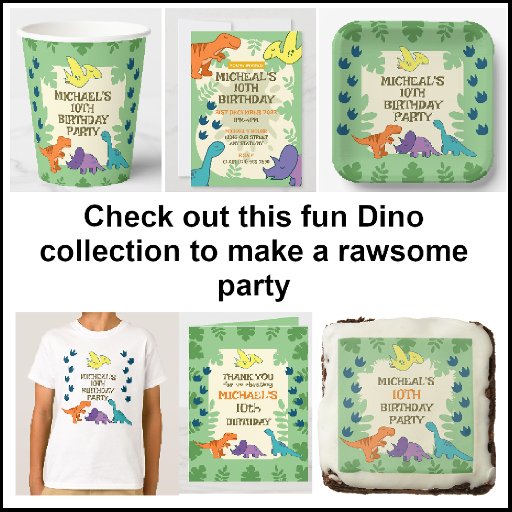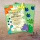 Cute dinosaur birthday party invitation featuring yellow, blue, orange and purple dinosaurs on a green foliage background. This invitation is also a template you can add your own details for your kids special day. Available as printed invitations or a digital download or even both.