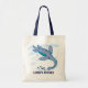 Graphic sketched blue Plesiosaur sea dinosaur boys school library bag. Personalise with your child's name, perfect for library or school. Currently reads Luke's books. Art and design by Sarah Trett.