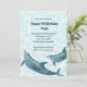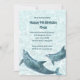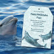 Dolphin birthday party invitations for boys or girls. Dolphins swim in a water image background on front and back of this tag shaped invitation. Customise the text for either a son's or daughter's birthday party. The design also works for a summer pool party too. Choose the instant download option to share online, or the printed version as a tag shape, or other.