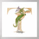 Kids Dragon Custom Name Monogram T Nursery Room Poster