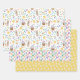Cute Easter wrapping paper sheets with Easter bunnies, Easter eggs, egg baskets, yellow chickens, daisies, and tulips in happy colours. Kids Easter wrapping paper sheets with hand drawn Easter themed patterns. Wrapping paper sheets for Easter parties. Wrapping paper sheets for Easter baby showers with bunnies, eggs, and daisies.
