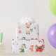 This image shows a charming wrapping paper featuring a cute child elf character dressed in green, smiling and holding a gift box. The elf is set against a white background with little decorative elements like gold stars and snowflakes, capturing a festive Christmas scene. This style of wrapping paper is particularly attractive for children’s gifts and holiday celebrations.