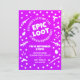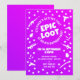 Show off that you've got some cool loot with this neon gamer party invitation. Chunky white text says 'Epic Loot' on a vibrant purple background, surrounded by a border of stars and game weapons. Great for kids who like battle royale video games. You can change the colour of ALL elements in the Customise screen. ••• For more video game party supplies, visit my store Zazzle.comJessicaAmberArtist ••• For custom orders, message me on Zazzle