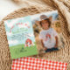 Celebrate in barnyard style with this adorable birthday banner — perfect for your little one’s 2nd birthday party! Featuring a watercolor red barn and sweet baby farm animals — pig, cow, sheep, and chick — plus the fun phrase “Oink, Baa, Moo – [Name] is two!”, this banner adds the perfect rustic charm to your farm-themed celebration. Bright, cheerful, and full of country fun, it's a festive focal point for your toddler’s big day!