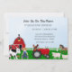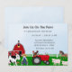 Barnyard Birthday Party Invitation with pigs, a cow,a horse, and a rooster sitting on a tractor. Great birthday invitations for kids. Suitable for girls or boys. Customise with your party details.delightfuldoodles.