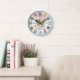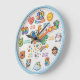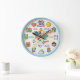 A vibrant and cheerful addition to any child's room, this decorative wall clock is designed with fun and educational elements in mind. Featuring a soft blue, scalloped frame and a face filled with friendly animals and characters—including a panda, giraffe, dinosaur, bear, and astronaut monkey—it brings instant joy. Instead of standard numbers, this clock uses colorful 3D-style numerals and various motivational quotes like "Believe You Can," "Dream Big, Little Star," and "Time To Be Awesome." The unique hands are a moon and sun, and the central design is surrounded by playful details like stars, a rainbow, and a rocket, all designed in a colorful and approachable cartoon style. This clock is more than a timekeeper; it's a playful learning tool and a charming decor piece that will bring smiles to young faces.