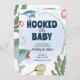 This fishing themed baby shower invitations would look so good for your party. It has watercolor artwork and natural elements, such as a fish, bobbers and a fishing pole. This design is perfect for families who love outdoors, fishing, or a nature inspired party theme.
