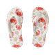 Kids flip flops are shown in a cute crabs and shells beach print design.