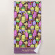 Kids will love this colourful beach towel. It's patterned with cute Kawaii character popsicles, lollies and ice cream cones. It also has customisable text across the bottom where you can add your own name or message