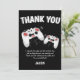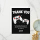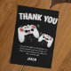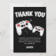 Send an extra special thank you card to your friends, thanking them for attending your party and gratitude for their gifts. Featuring two gaming control pads over a black background, with playful text that reads "THANK YOU" and "i enjoyed the cake and the present too, but my favourite part was seeing you! THANK YOU FOR COMING TO MY PARTY AND THE WONDERFUL GIFT" and "THEIR NAME. All font styles and background colours canbe changed by clicking on the customise further link after personalising.