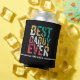 This is a perfect gift from a kid to a daddy for Father's Day. The design features four stripes of colours of grungy typography-BEST DADDY EVER- turquoise, beige, white, and red on a changeable black background.