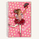 Cute cartoon style ballerina dancer with dark hair with a bouquet of roses and butterfly wings on pink polka dots. Add the girls name of your choice to this notebook. Currently reads Rebecca. This original graphic ballerina girl case is designed exclusively by Sarah Trett for www.mylittleeden.com