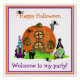Welcome your friends to your party with this cute and colourful poster. It features a large pumpkin gnome home and two gnomes standing on either side of it. There's a black cat and black spiders too. It says Happy Halloween at the top and Welcome to my party at the bottom. This design is also featured on an entire party supply collection so be sure to take a look at all the fun items.