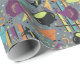 Kids Grey Retro Witchy Halloween Birthday Wrapping Paper