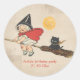 Kids Halloween Birthday Party Cute Witch Broom Cat Classic Round Sticker