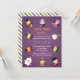 If the birthday boy or girl's birthday falls in the Halloween month or you just want to have a Halloween dressed up party for kids, you got to have this cute and colourful spooky monsters Halloween party invitation! The illustration has kids dressed in various costumes forming a border around the invite. The costumes include witch, zombie, pink monster, skeleton and skull, spider, vampire, jack o lantern pumpkin, ghost, kitty cat and monster by Frankenstein! A green, white and purple slanted stripes pattern on the reverse page.