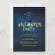 Halloween party invitation featuring a full moon, flying bats on a dark starry night sky. The invitation reads: Halloween Party