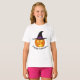 This kids t-shirt is shown in white with a Happy Halloween pumpkin print.