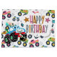 An Adorable Large Gift Bag Of Cartoon Big Wheel Cars And Trucks For Birthday Gifts