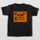 Get your little one into the Halloween spirit with this spooky black T-shirt featuring a haunted house scene. The design showcases black bats, a witch, and a ghost haunting an eerie house against a vibrant orange background. The phrase 'Happy Halloween!' is written in creepy white letters, making this the perfect shirt for Halloween festivities!