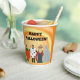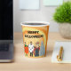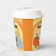 Cute and fun, kids in costumes, in front of an orange and yellow swirl, are printed on custom paper cups. The text, Happy Halloween, is written in eyeball script, and can be customised. Be sure to customise both sides. Thank you for shopping at CherylsArt on Zazzle.