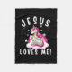 Kids Jesus Loves Me Christian Girls Unicorn Fleece Blanket