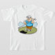 The t-shirt feels and looks great quality, a good thick cotton. It will be a little big for my son, but that means he will be able to wear it and not out grow it too soon. The print was as described on the order when personalised. True size, shape and colour T-shirt- thanks.