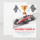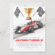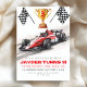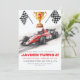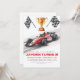 A fun birthday invitation for kids featuring a racing theme with cars, checkered flags, and bright colors. Perfect for inviting friends to a Little Racers birthday celebration.