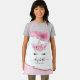 Unique girly cooking apron featuring pink and gold glitter agate crystal edges, a cute unicorn face with girly florals, the childs name in a elegant calligraphy font, and a personalised saying that can be deleted.