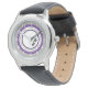 Personalise the face background colour, strap style or bezel style on this kid's unique Tae Kwon Do watch with editable initials. Design is a circular text graphic in the centre in purple and black and white details. Just edit the letters in the easy Zazzle editor. Many other style options available to select from to customise further to make it a great personal gift for a kid.