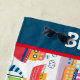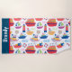 A Cute Kids Beach Towel Of Boats And Lighthouses in Red And Blue You Can Add Childs Name
