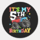 Kids Monster Truck Its My 5th Birthday Boy 5 Five Classic Round Sticker