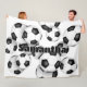 This fun soccer themed fleece blanket can be personalised with the athlete's name atop the image of a bunch of varied size black and white soccer balls - by katz_d_zynes