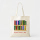 Design of cute, colourful, cartoon books on bookshelf illustration with writing, suitable for a children's library bag or book bag. The name can be customised. Bright and colourful, this is a happy design for kids of all ages.