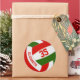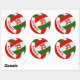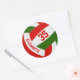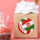 These custom volleyball themed round stickers feature the realistic image of a red, green and white volleyball upon which you can customise the athlete's name & jersey number in a varsity letter style font - by katz_d_zynes