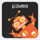 Kids Orange Black Robot Personalised Cool Modern Square Sticker