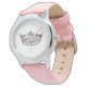 Kids pink leather strap watch shown with a pageant crown print. Customise this watch or buy as is.