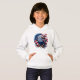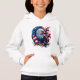 Kids hoodie is for boys and girls and is shown in white with a festive patriotic eagle flag print, this t-shirt is made of quality materials and craftsmanship.