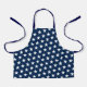 This kids apron is shown in a patriotic blue stars print, perfect for July 4th BQ.